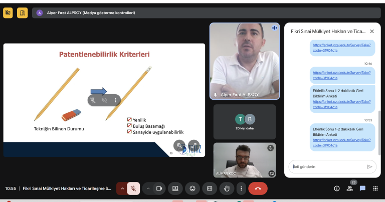 Malatya Turgut Özal Üniversitesi Teknoloji Transfer Ofisi Koordinatörlüğü tarafından, akademik ve yenilikçi çalışmalara katkı sunmak amacıyla “Fikri Sınai Mülkiyet Hakları ve Ticarileşme Süreçleri” başlıklı çevrim içi bir etkinlik düzenlendi.